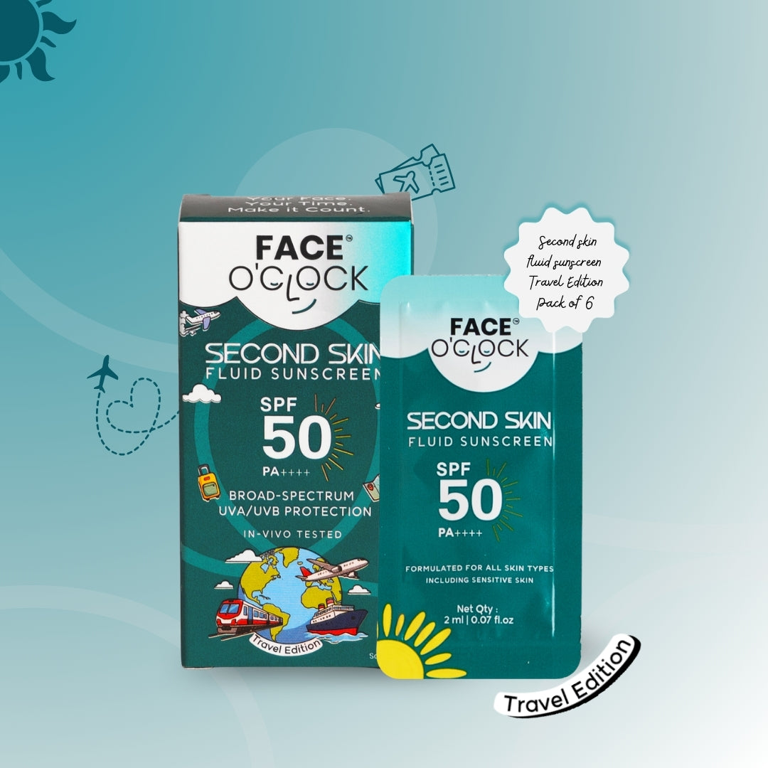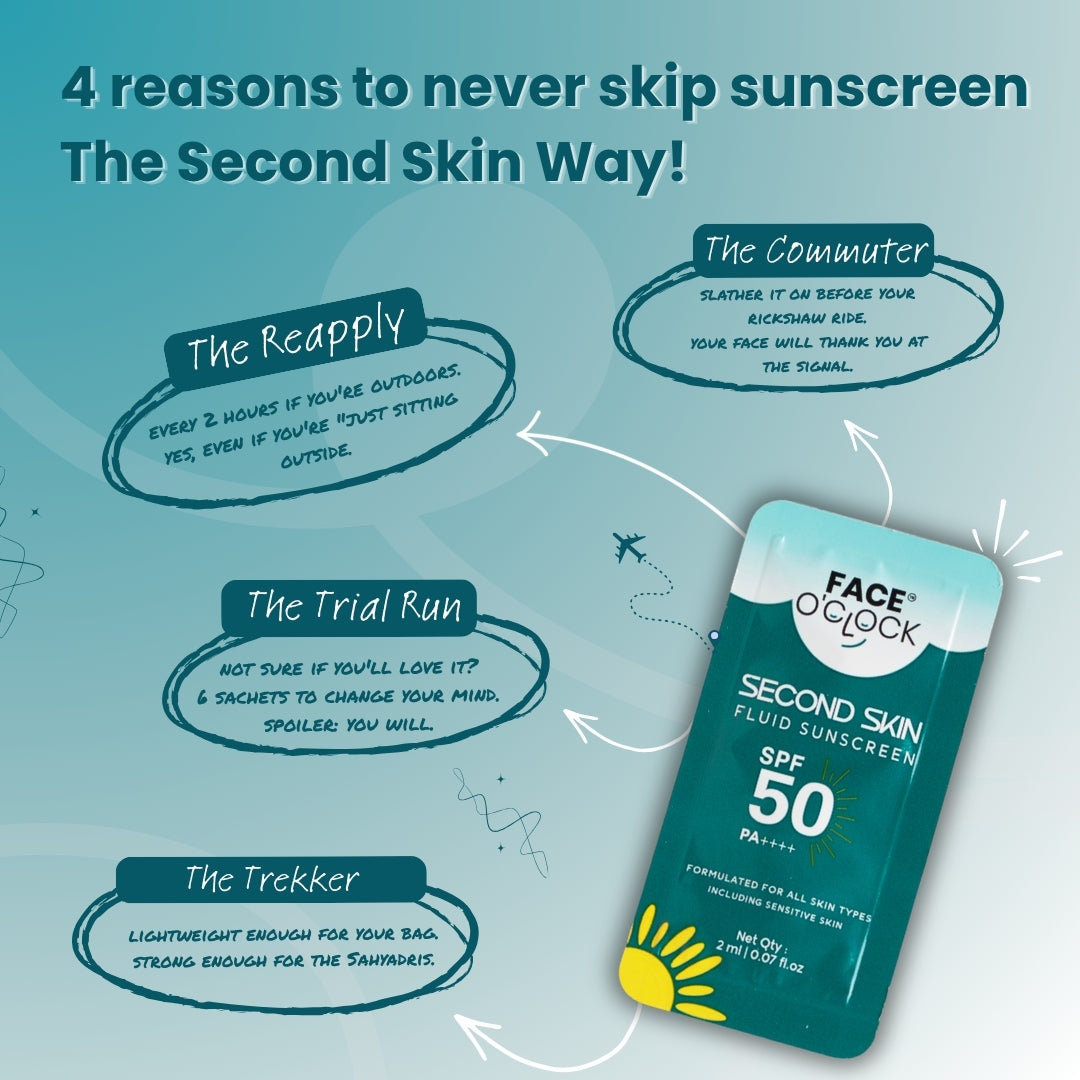 Second Skin Fluid Sunscreen SPF 50 PA++++ Travel Edition 6 sachets. 2ml each. No excuses left.